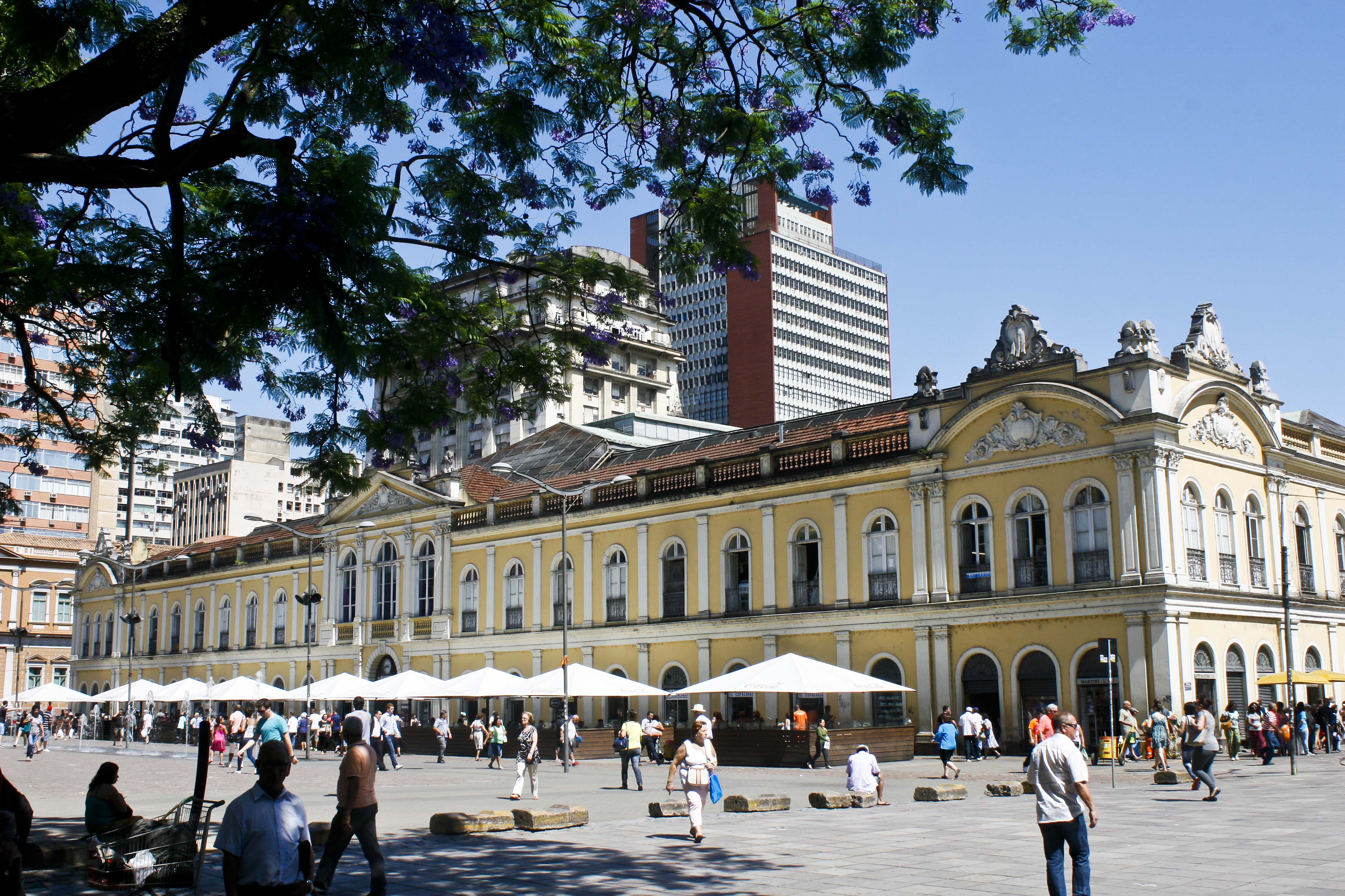 Acho que uma das melhores maneiras de se conhecer uma cidade é visitar o mercadão público dela! -www-www-www- No mercado de POA tu acha de tudo (e por um preço mais marotex), além de ter um ponto de venda de sorvete MUITO BOM (estão lá no mercado desde mil novecentos e lá vai pedrada), além disso fazem alguns anos que restauraram o prédio, então é válido também a visita para apreciar a construção mais datada. Enfim, eu curto muito ir ao mercado público, não apenas pelas comprinhas, mas pelo movimento, adoro o centro de Porto Alegre, pois é cheio de gente, tem aqueles tiozinho que ficam gritando que nem uns loucos "Ó CORTE DE CABELO POR APENAS X REAIS" "Ó PROMOÇÃO NA LOJA X" "Ó PRODUTO TAL" (sim, eu curto até os tiozinhos que gritam), tem gente que faz showzinho, aqueles "homem estátua" e eu adoro ver todas aquelas pessoinhas caminhando por lá. Há também no centro regiões mais históricas, sendo chamadas de "Centro Histórico" (criatividade pra nome 10/10), lá a pessoinha pode ver um monte de prédios antigos -www-www-www- Confesso que não sei direito quem é quem nesses prédios, uma vez que eu sai muito nova de Porto Alegre, então eu só me lembro da imagem dos lugares, mas o que cada um é já fica mais complicado (sem mencionar que até hoje eu ainda não consegui visitar alguns deles), então o que eu posso dizer é que a terceira foto é a prefeitura de POA e o chafariz -www- que aparece na imagem foi um presente da galerinha espanhola pela revolução Farroupilha (algo do tipo).
